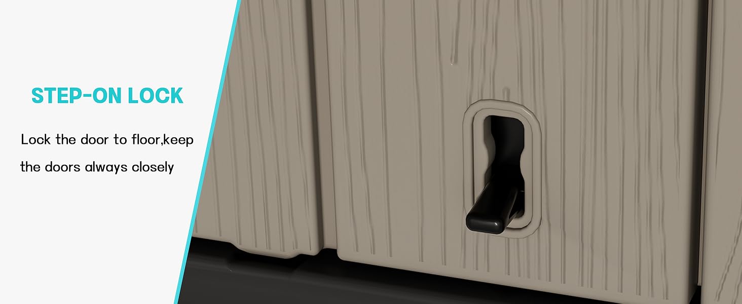 - [WEATHER RESISTANT MATERIAL]—KINYING storage sheds outdoor with floor are made from imported High Density Resin material,it’s weather-resistant and UV protection, easy cleaning,will not fade,peel and rot.