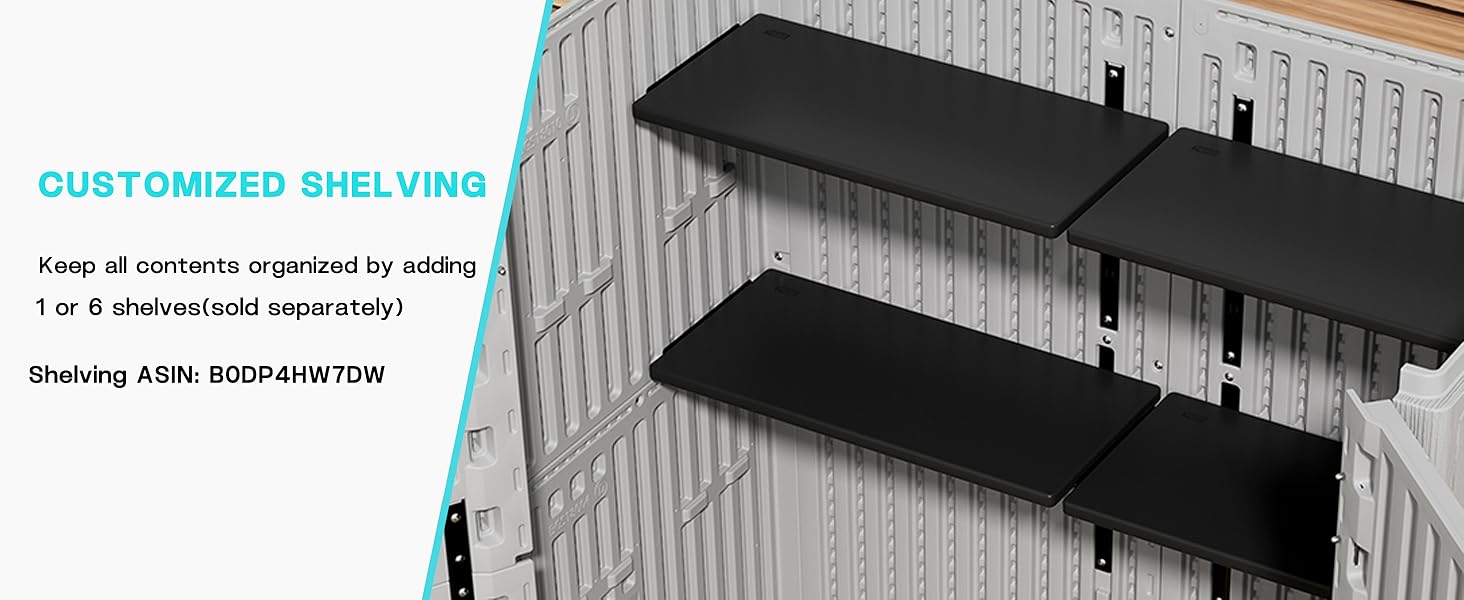 - [CUSTOMIZED SHELVES]—We offer small shelves to enhance garden shed usability,you can purchase the quantity of the shelves as your needs.