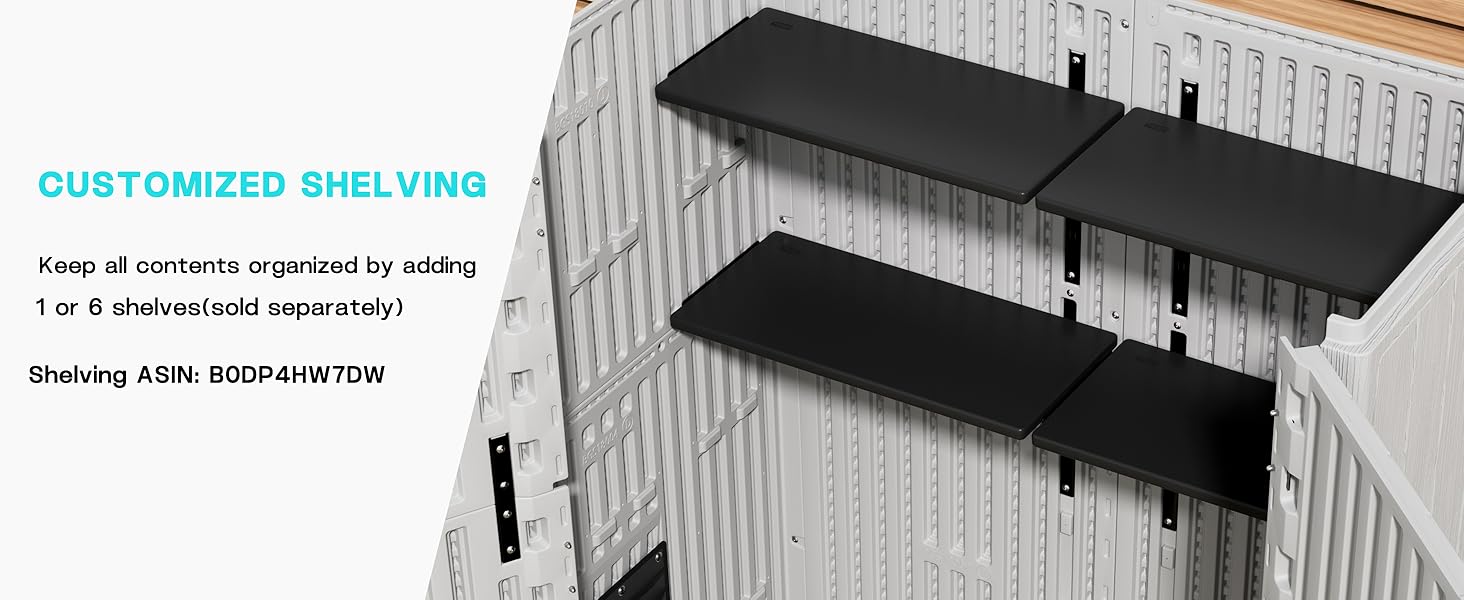 - [CUSTOMIZED SHELVES]—We offer small shelves to enhance garden shed usability,you can purchase the quantity of the shelves as your needs.
